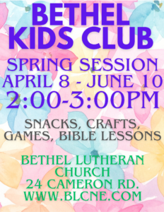 We have Children’s Sunday School that includes Bible story, crafts, and games.